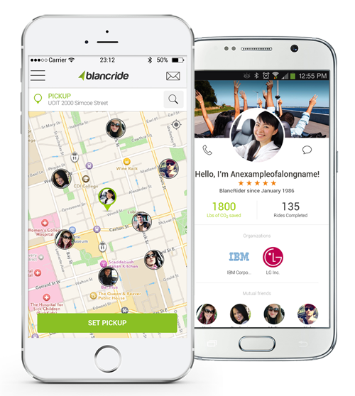 BlancRide is a mobile platform that helps commuters with similar routes arrange carpooling via smartphones.